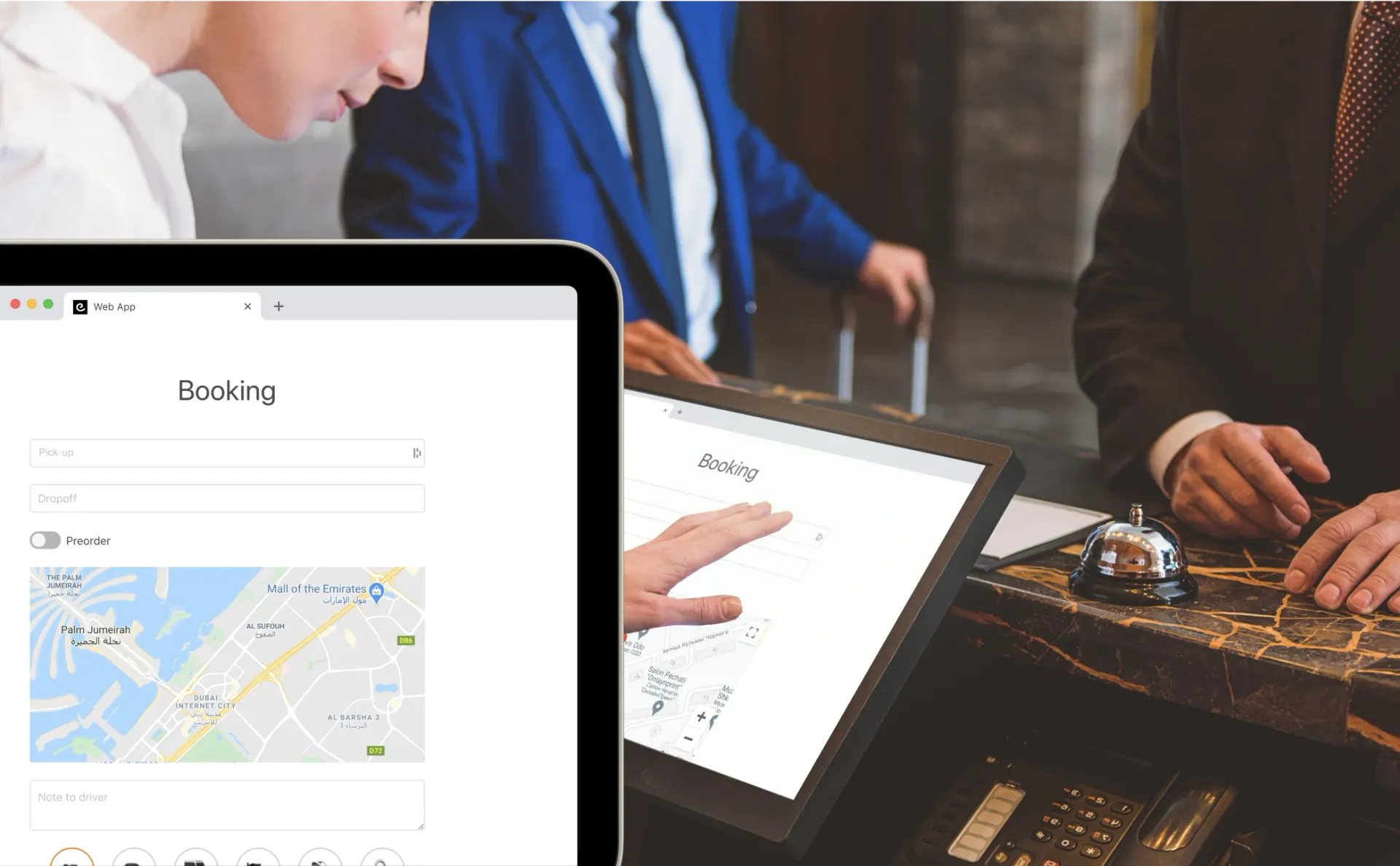 Your customers can book a taxi using their desktop or mobile browser. No need for app installations, if they are not ready for it!